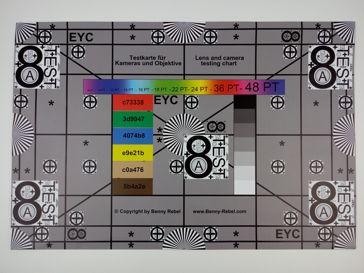 Nuestra tabla de prueba es reproducida muy bien por la cámara de LG. Los detalles permanecen visibles y los colores se reproducen claramente. Sin embargo, la imagen se vuelve menos nítida hacia los bordes y, en particular, las esquinas inferiores están más bien descoloridas.