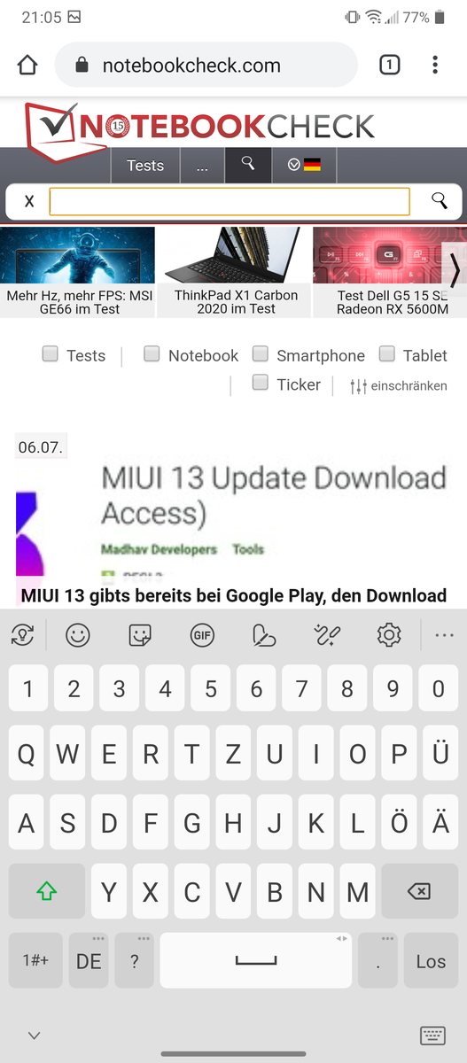 Aunque nuestro dispositivo de revisión tiene una ranura para tarjetas SIM híbridas y puede aceptar dos tarjetas nano-SIM al mismo tiempo, sólo se reconoce una tarjeta SIM. El LG Velvet soporta todas las bandas LTE relevantes para Alemania, incluyendo la cada vez más importante banda 28 LTE. En total, sin embargo, sólo soporta 8 bandas LTE. Por eso, el uso del buque insignia de LG en el extranjero va a ser muy problemático - también hay que mencionar el bajo número de bandas de frecuencia 2G/3G soportadas.