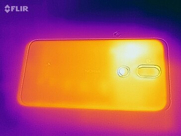 Sin embargo, nuestro dispositivo de prueba se calienta bajo carga. Medimos temperaturas de superficie que alcanzaban los 46,1 °C durante nuestra prueba de esfuerzo, con el dispositivo completo por encima de los 40 °C, que se sentirán calientes al tacto y pueden hacer que el Nokia 8.1 sea incómodo de sostener.