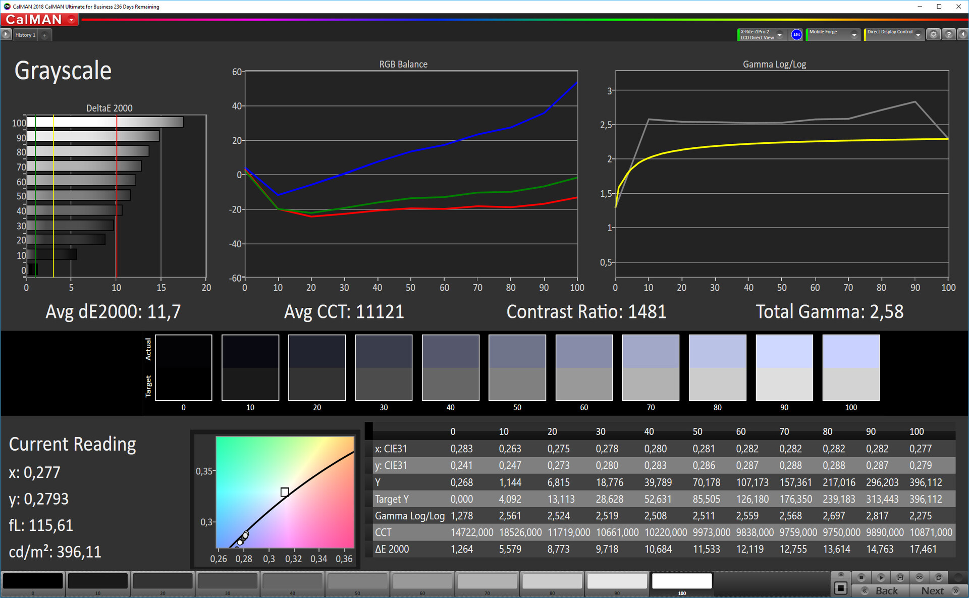 ΔE Greyscale Calman: 11.7 | ∀{0.09-98 Ø5}