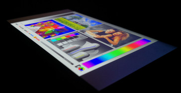 La combinación de la luminancia de la pantalla y el nivel de negro de 0,38 cd/m² dio como resultado una buena relación de contraste de aproximadamente 1:1100. Nuestra medición APL 50 mostró un contraste similarmente alto (1:1058) porque el nivel de negro permaneció relativamente constante con áreas brillantes y oscuras distribuidas uniformemente (0,39 cd/m²).