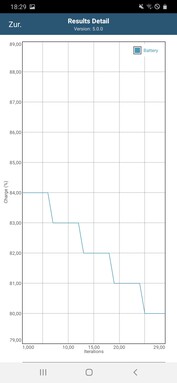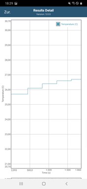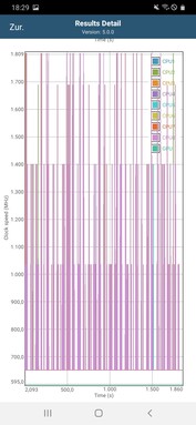 Más interesante es el desarrollo de calor dentro de los A20. Para comprobar el comportamiento del calor residual del smartphone Samsung bajo carga sostenida, utilizamos la prueba de batería de la aplicación GFXBench. La prueba de Manhattan 3.1 muestra que el número de cuadros se mantiene estable al aumentar la carga, por lo que las caídas de rendimiento bajo carga son poco probables.