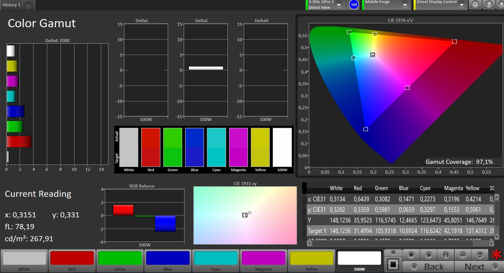 | Colorchecker dE 2000 max. * | 4.57 | 3.4 26% | 5.5 -20% | 5.64 -23% | 1.7 63% |