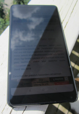 El Mi Mix 2S tiene una pantalla IPS de 5,99 pulgadas con una resolución de 2160x1080 píxeles. El resultado es un formato 18:9, una relación pantalla-cuerpo del 81,9% y una densidad de píxeles de 403 PPI. La pantalla, protegida por Gorilla Glass 4, tiene un brillo medio de 462,7 cd/m² y un máximo de 492 cd/m². Mientras que esto corresponde a un buen brillo, la pantalla no está muy iluminada uniformemente. Sin embargo, durante el funcionamiento no se notan estas variaciones mínimas en el brillo, y tampoco se pueden ver píxeles individuales en la pantalla.