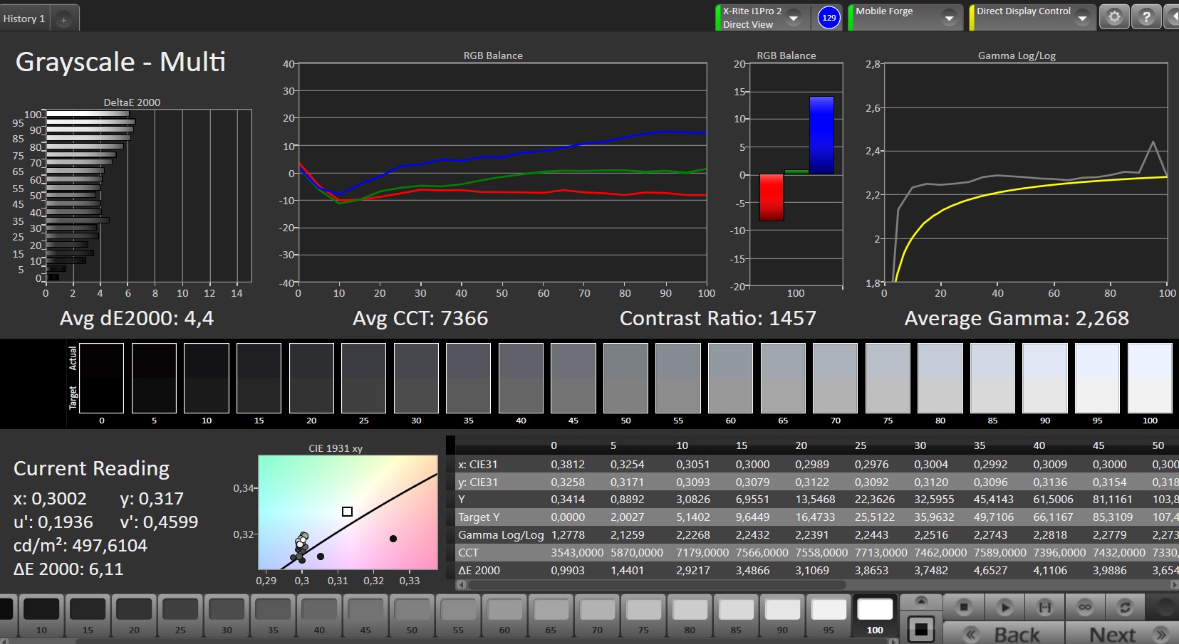 ΔE Greyscale Calman: 2.7 | ∀{0.09-98 Ø5}