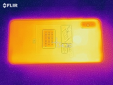 Ni la parte trasera ni la delantera muestran mucho calentamiento durante la carga. Medimos un máximo de apenas 35 °C (95 °F) en la parte delantera durante la prueba, y la parte trasera también muestra una temperatura superficial máxima muy baja de apenas 33 °C (91 °F). En el funcionamiento diario, el desarrollo de la temperatura de Redmi Note 6 Pro no plantea ningún problema u obstáculo.