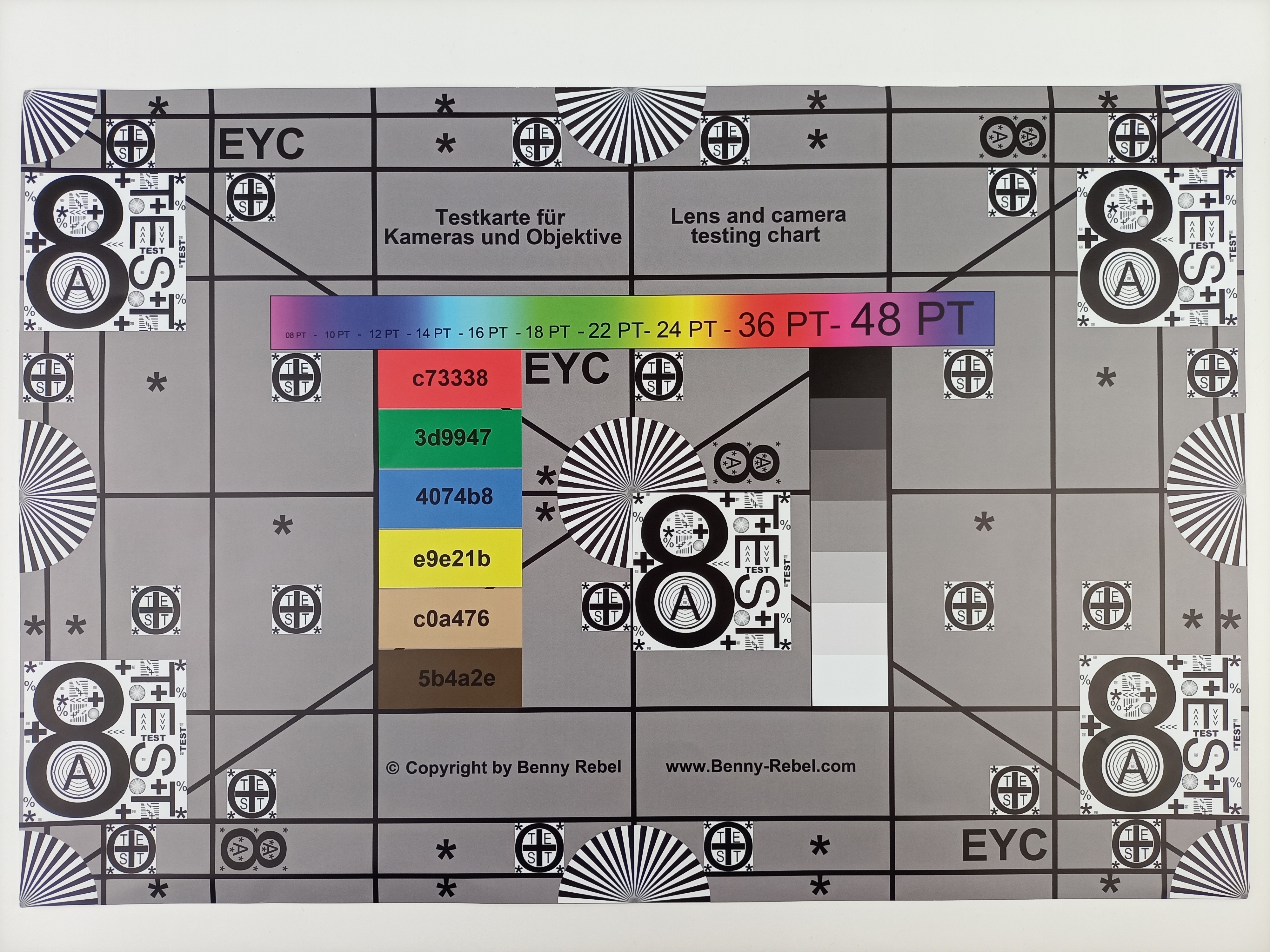 Main cameraZoom (5x)Ultra-wide-angleLow lightNuestra foto del Pasaporte ColorChecker certifica que la cámara del ZTE Axon 11 tiene relativamente pequeñas desviaciones de color en sus fotos. Los marrones son un poco demasiado claros, y los rojos son demasiado oscuros. La tabla de prueba también se reproduce con mucho detalle y colores fuertes bajo condiciones de iluminación controlada. En las esquinas inferiores, sin embargo, hay una ligera palidez.