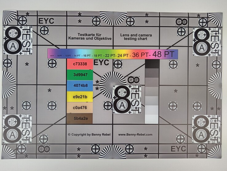 Tomamos una foto de nuestra tabla de pruebas con el Blade V10 bajo iluminación controlada. La cámara consigue captar muchos detalles y las estructuras siguen siendo muy reconocibles. Sin embargo, los colores son demasiado claros e incluso aparecen lavados en las esquinas inferiores. Sólo ciertas áreas de la tabla de prueba con alto contraste son visibles en las fotos tomadas con poca luz. Los colores sólo se pueden adivinar y las estructuras finas no son reconocibles.