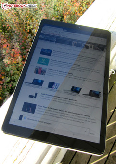 La tableta ha perdido medio milímetro de espesor (ahora 8 mm). Toda la parte delantera de la tableta está protegida por Gorilla Glass 4, mientras que la cubierta trasera está hecha de plástico, que sigue dando una impresión de muy alta calidad con su superficie ligeramente flexible y antideslizante. La tableta es muy estable y no cede bajo presión. Sólo se puede deformar ligeramente.