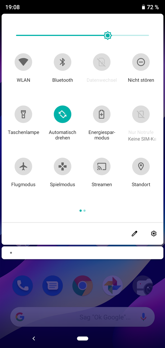 La pantalla LCD de 66 pulgadas en formato 19:9 tiene una resolución de 1520x720 píxeles. Con esto, la densidad de píxeles de la Vista 3 se mantiene significativamente por debajo de la mágica marca de 300 ppi. En el funcionamiento diario, la baja resolución se nota negativamente, sobre todo cuando se trata de una escritura pequeña.