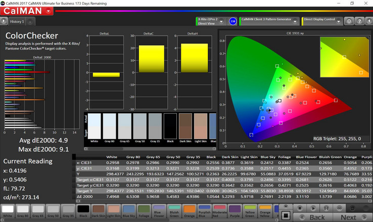 Nuestra unidad de revisión presentaba el mismo panel BOE NV156FHM-N61 (BOE0747) que el modelo GTX 1060, sólo que esta unidad en particular era 11% más brillante (300 nits). Las mediciones restantes arrojaron resultados casi idénticos, por ejemplo, una desviación DeltaE media de 4,9 para los colores. Puede encontrar más información en la revisión de la GTX 1060, que también contiene información sobre los lentos tiempos de respuesta de la pantalla.