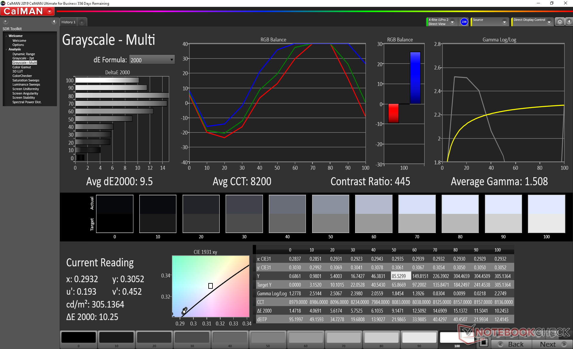 ΔE Greyscale Calman: 9.5 | ∀{0.09-98 Ø5}