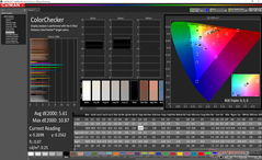 Otras mediciones con un colorímetro X-Rite revelan sólo la escala de grises promedio, pero también los colores precisos en comparación con AdobeRGB. La temperatura de color, por ejemplo, es ligeramente más cálida de lo previsto en 5904. Extrañamente, nuestro intento de calibrar la pantalla con el software i1Profiler no dio lugar a ningún cambio.