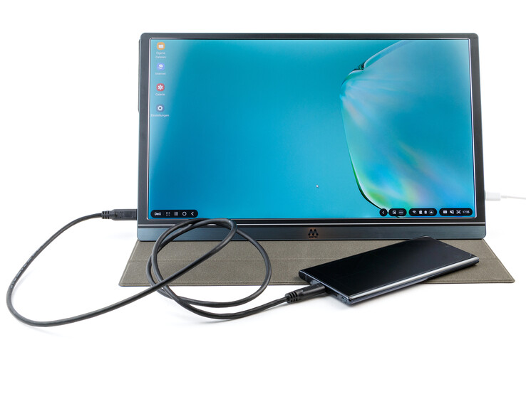 La puesta en marcha fue fácil en la prueba, tanto en el portátil como en el smartphone. Si se calibra el monitor, también se puede guardar un perfil correspondiente para él, que se utiliza tan pronto como se conecta al ordenador. El uso vertical también es posible. Un smartphone conectado al Z1 también debe soportar la salida de imágenes a través de la conexión USB. Lo probamos con éxito tanto con el Samsung Galaxy Note10+ como con el Huawei Mate 30 Pro. Para ambos smartphones se disponía de una sencilla función de espejo de pantalla y un modo de escritorio. Si quieres conectar un iPhone a él, necesitarás un adaptador opcional.