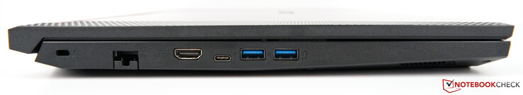 El Nitro 5 ofrece el mínimo de puertos según los estándares de los portátiles para juegos, con algunas ausencias notables. Acer incluye cuatro puertos USB, tres de los cuales son de tipo A y el otro de tipo C. Es una pena ver un puerto USB 2.0, pero al menos los otros puertos de tipo A funcionan con el estándar USB 3.0, que es más rápido. Acer ha incluido puertos Ethernet RJ45 y HDMI también, que son bienvenidos, pero la omisión de un lector de tarjetas SD o un puerto Thunderbolt parecen oportunidades perdidas. Lo mismo se aplica a la ausencia de DisplayPort, que se ve agravada por el hecho de que el puerto Type-C tampoco es compatible con el estándar. Por lo tanto, no hay juegos DisplayPort con el Nitro 5.