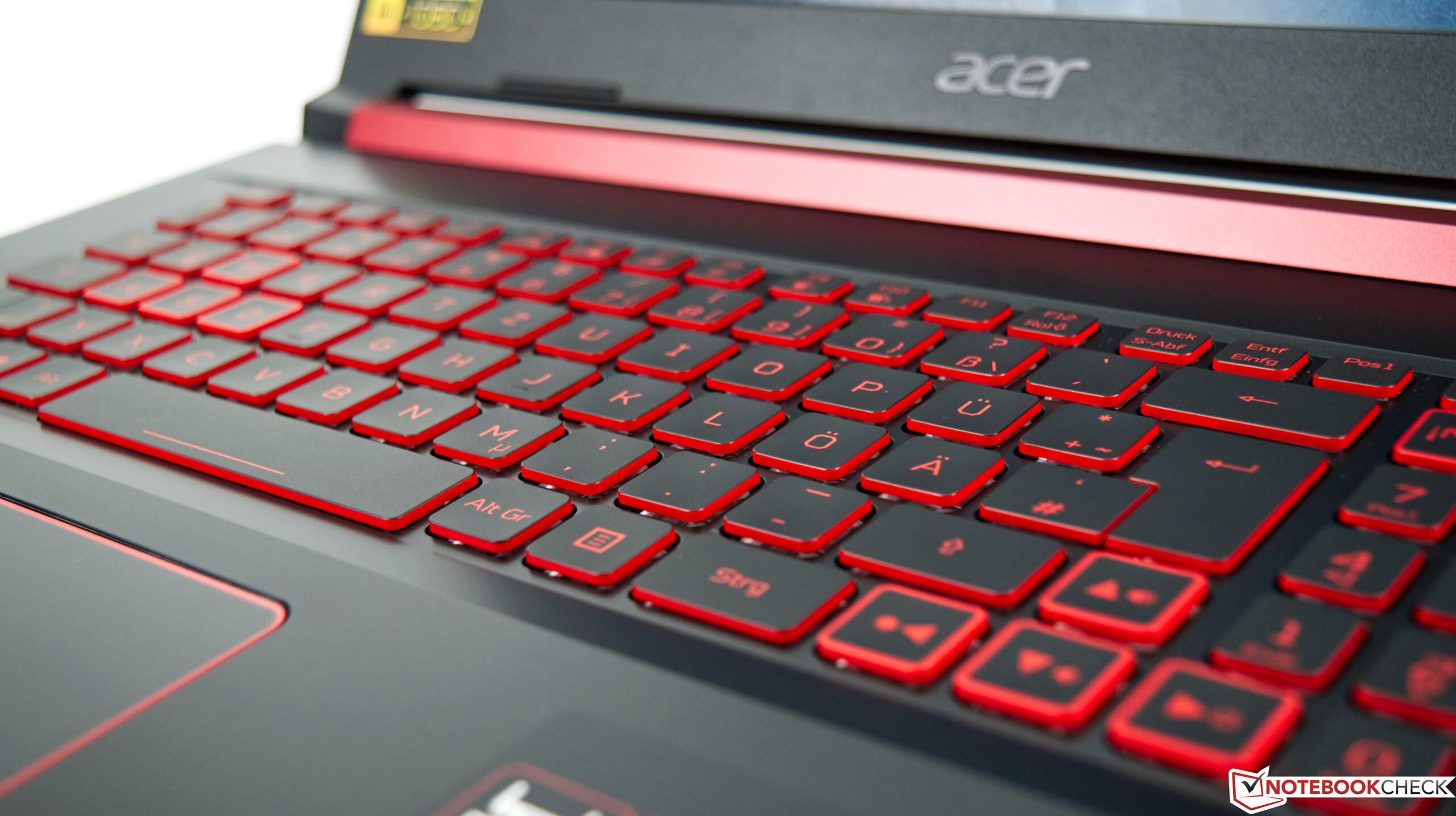 Acer equipa el Nitro 5 con un teclado chiclet de seis filas. Acer encaja ligeramente el teclado de goma de la cúpula en la cubierta del teclado, dejándolo a ras con el soporte de la palma de la mano. Como mencionamos anteriormente, las teclas tienen letras rojas, aunque varias, incluyendo WASD, también tienen contornos rojos. Acer también incluye una retroiluminación de cuatro etapas, que puede que encuentres usándola más a menudo de lo que te habrías imaginado, ya que las letras rojas son difíciles de leer con una luz ambiental brillante. Lamentablemente, la luz de fondo es sólo roja, en lugar de RGB.