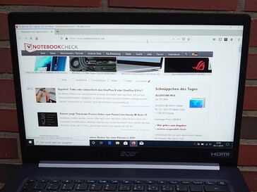 Sin embargo, hay algunas desventajas de tener un diseño tan compacto. En primer lugar, Acer ha omitido funciones empresariales como un puerto Ethernet, por lo que necesitará un adaptador a mano si necesita una conexión a Internet por cable. Además, Acer ha equipado el dispositivo con una batería relativamente pequeña, que no le permitirá pasar un día completo de uso intensivo lejos de la red eléctrica. Aunque la célula de 36 Wh ayuda a mantener el dispositivo por debajo de 1 kg (~2.2 lb), LG ha podido equipar su serie Gram de 14 pulgadas con baterías considerablemente más grandes mientras que permanece por debajo de ese umbral de peso.