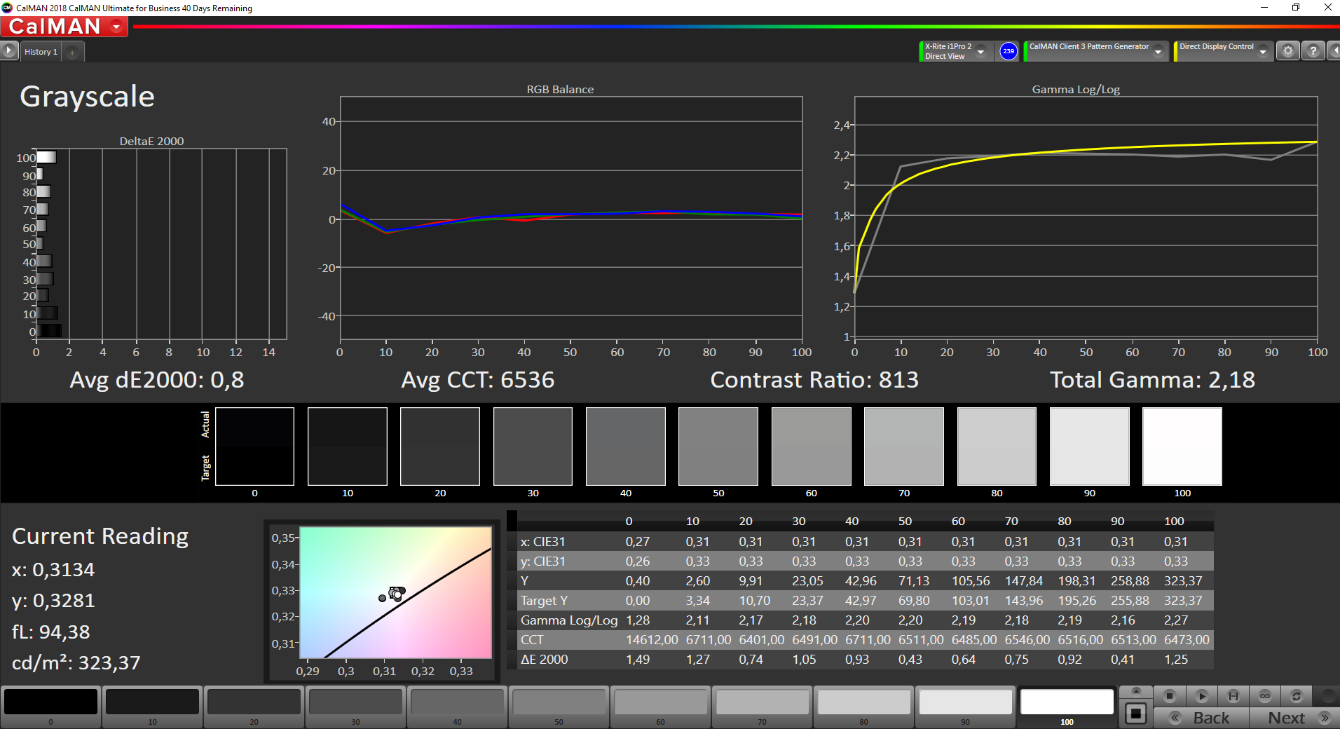 ΔE Greyscale Calman: 2.1 | ∀{0.09-98 Ø5}