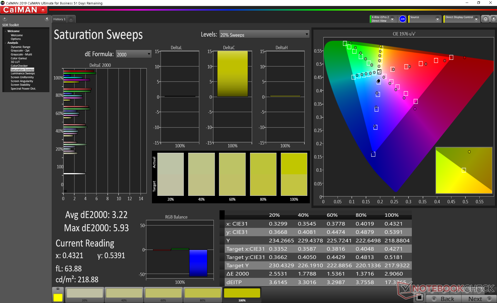 | Display P3 Coverage (%) | 97.7 | 65.7 -33% | 66.6 -32% | 67.5 -31% | 66.4 -32% | 66.3 -32% |