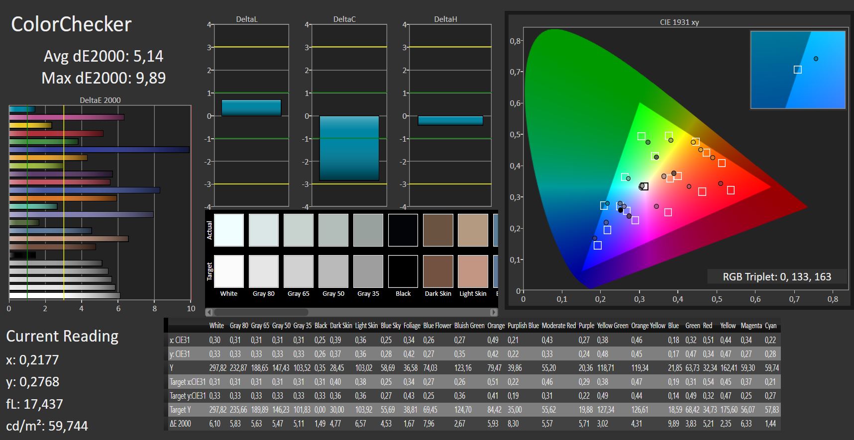 ΔE ColorChecker Calman: 5.14 | ∀{0.5-29.43 Ø4.78}