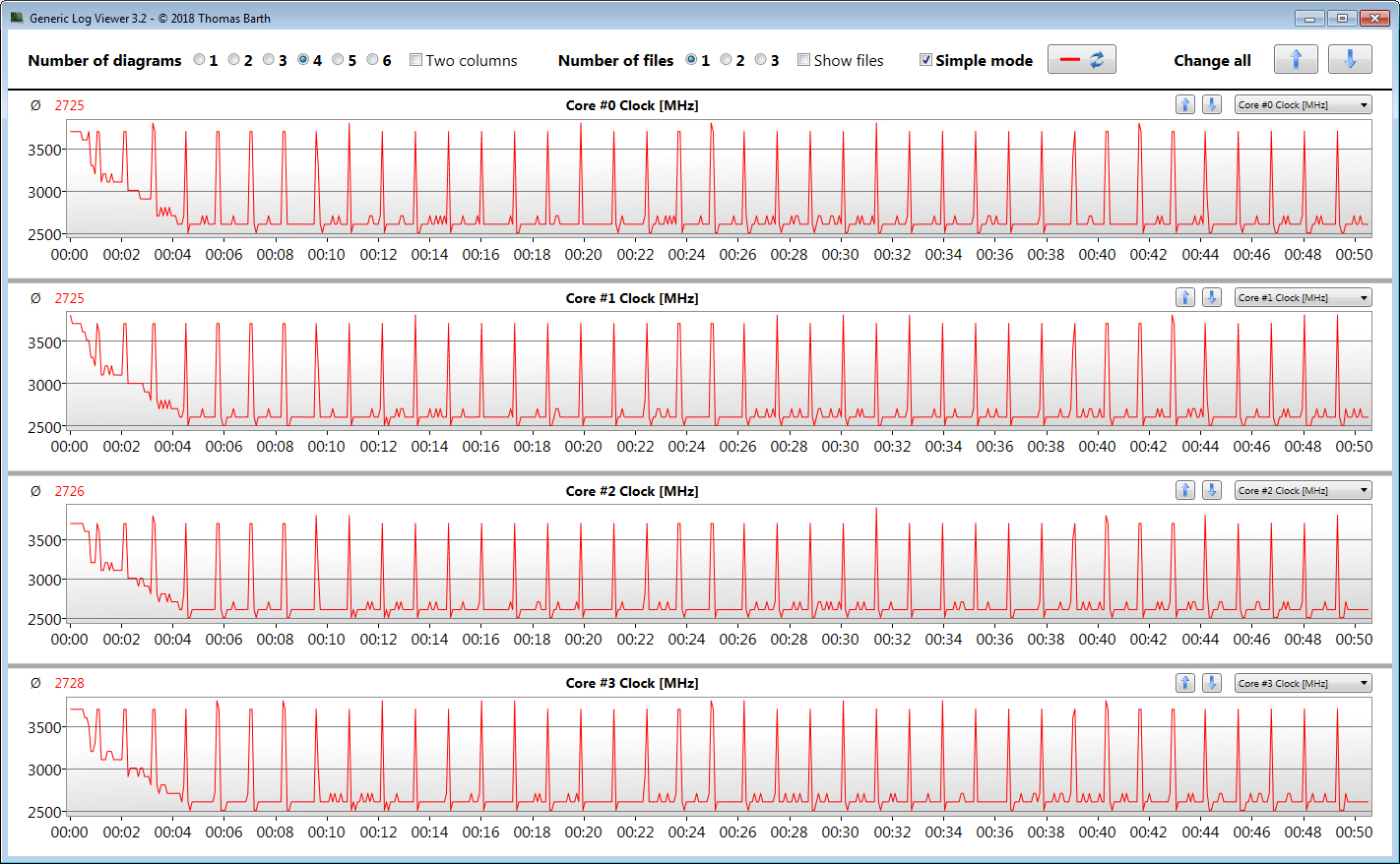 Nuestra prueba de esfuerzo (Prime95 y FurMark funcionan durante al menos una hora) es procesada por la computadora de Lenovo de maneras ligeramente diferentes con la energía de la batería y cuando está conectada. El procesador funciona a velocidades entre 500 y 900 MHz. El núcleo de gráficos funciona entre 1.400 y 1.500 MHz. Con la energía de la batería, la velocidad del reloj de la CPU salta de un lado a otro entre 400 MHz y 3,7 GHz. La GPU funciona a velocidades de alrededor de 1.700 MHz. La prueba de esfuerzo representa un escenario extremo que no ocurre en la vida diaria. Con esta prueba, verificamos que el sistema permanezca estable incluso a plena carga.