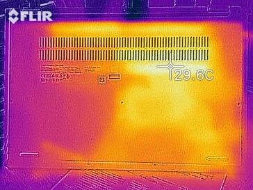 El Lenovo C340 no produce mucho ruido en todo el rango de carga. Cuando el ventilador está inactivo, a menudo se apaga y prevalece el silencio, a menos que se acceda al disco duro de 2,5 pulgadas. Con la carga llena, el ventilador gira un poco hacia arriba. Medimos un nivel de presión sonora de sólo 36,8 dB(A) durante la prueba de esfuerzo.
