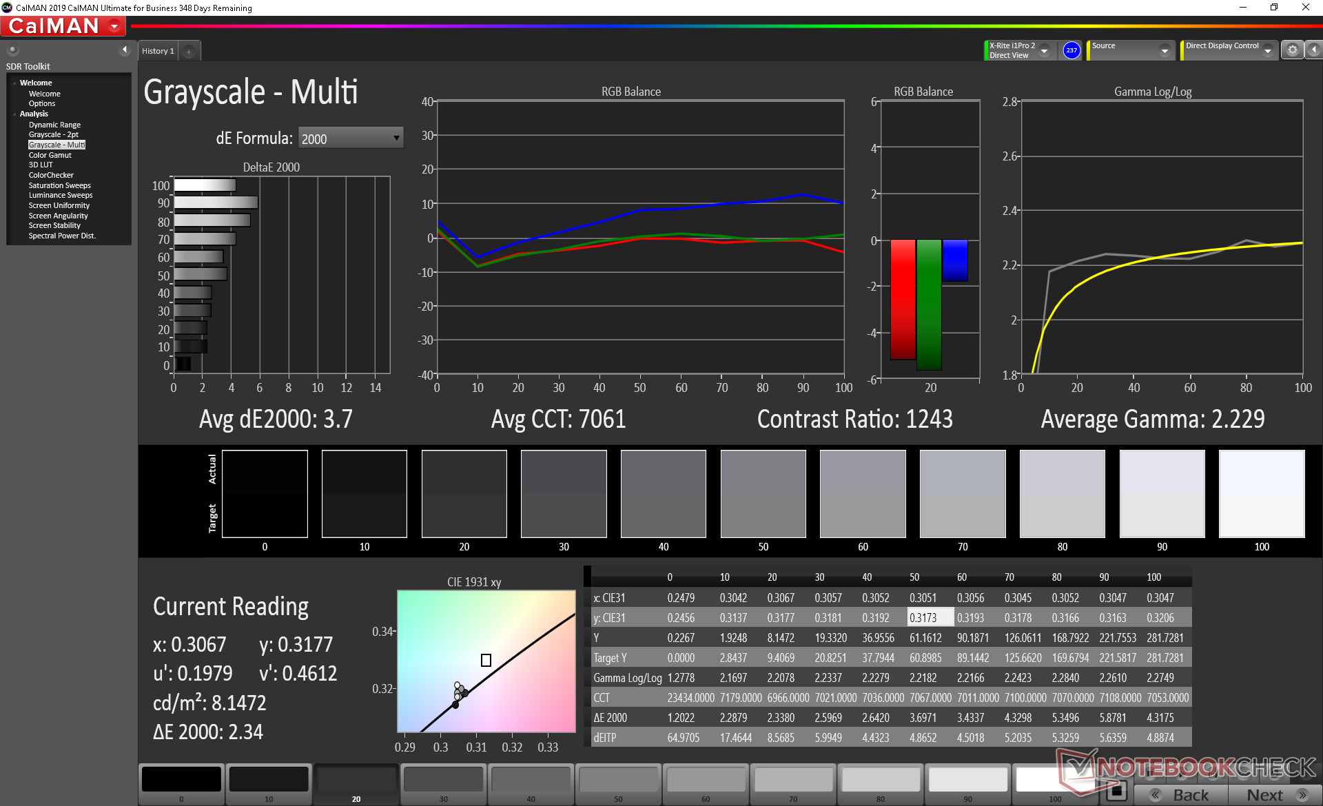 ΔE Greyscale Calman: 3.7 | ∀{0.09-98 Ø5}
