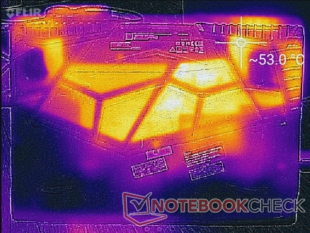 Tenga en cuenta que la parte inferior del portátil se mantiene relativamente fría debido a las rejillas de ventilación sobredimensionadas. Asegúrate de permitir un flujo de aire óptimo y de jugar en un escritorio plano siempre que sea posible.