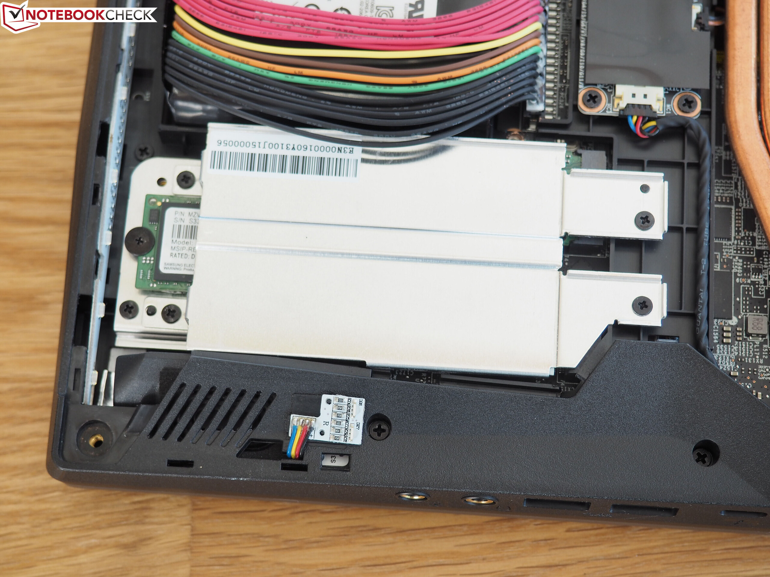 Las amplias posibilidades de mantenimiento y actualización son uno de los puntos fuertes del portátil MSI. Después de soltar los seis tornillos de la parte inferior del aparato, se puede retirar la tapa inferior con la ayuda de los dedos (consejo: debe empezar por las rejillas traseras del ventilador).