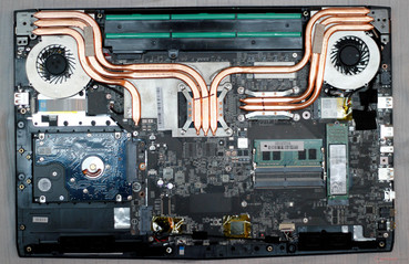 Bajo cargas pesadas o con el modo Cooler Boost activado, el ruido del ventilador puede eclipsar los 52 dB(A). Una vez más, los ventiladores no son de tono alto como los que se usan en otros dispositivos (por ejemplo, el GL553VD de Asus). El ruido de los ventiladores puede llegar a ser fuerte, pero no es terriblemente molesto o molesto y más parecido a un zumbido fuerte que a un chillido penetrante.