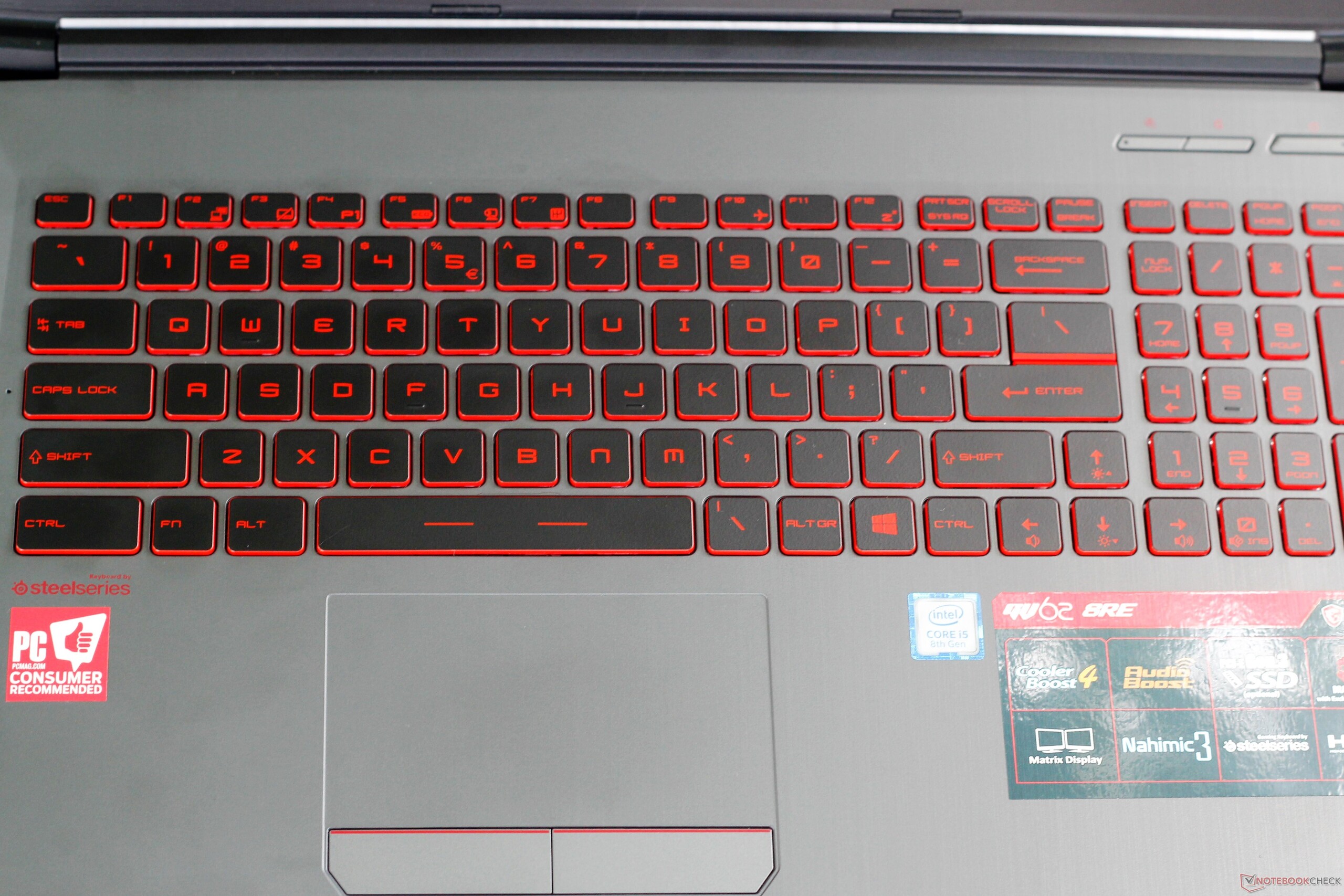 Como con la mayoría de las máquinas MSI, el teclado SteelSeries es excelente. La retroalimentación es nítida y firme, y las teclas ofrecen una generosa cantidad de viajes con una gota de almohada. El teclado es similar al de la GF62 con el mismo ruido mínimo y gran sensación. Dicho esto, los teclados de MSI son algunos de los mejores en portátiles para juegos, y eso continúa incluso en sus líneas presupuestarias. El único inconveniente del teclado es la falta de iluminación RGB y la estética divisiva compuesta de pintura roja a los lados de las teclas. La luz de fondo se vuelve bastante brillante pero se limita a un color rojo.