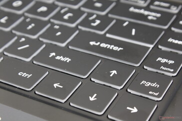 El tamaño de la llave y la retroalimentación son idénticos a los de los 14 modernos y por lo tanto todos nuestros comentarios existentes se aplican aquí. La distribución de las teclas, sin embargo, es diferente en más de un sentido. Por ejemplo, la tecla "Fin" se ha eliminado mientras que la tecla "fn" está ahora en el lado izquierdo del teclado en lugar del lado derecho. El botón de encendido se ha reubicado en la esquina superior derecha y muchas de las teclas de función secundarias son diferentes a como aparecen en el Modern 14. Extrañamente, la tecla "F6" no tiene luz LED para mostrar si la cámara web ha sido activada o desactivada, a diferencia de la del Modern 14.
