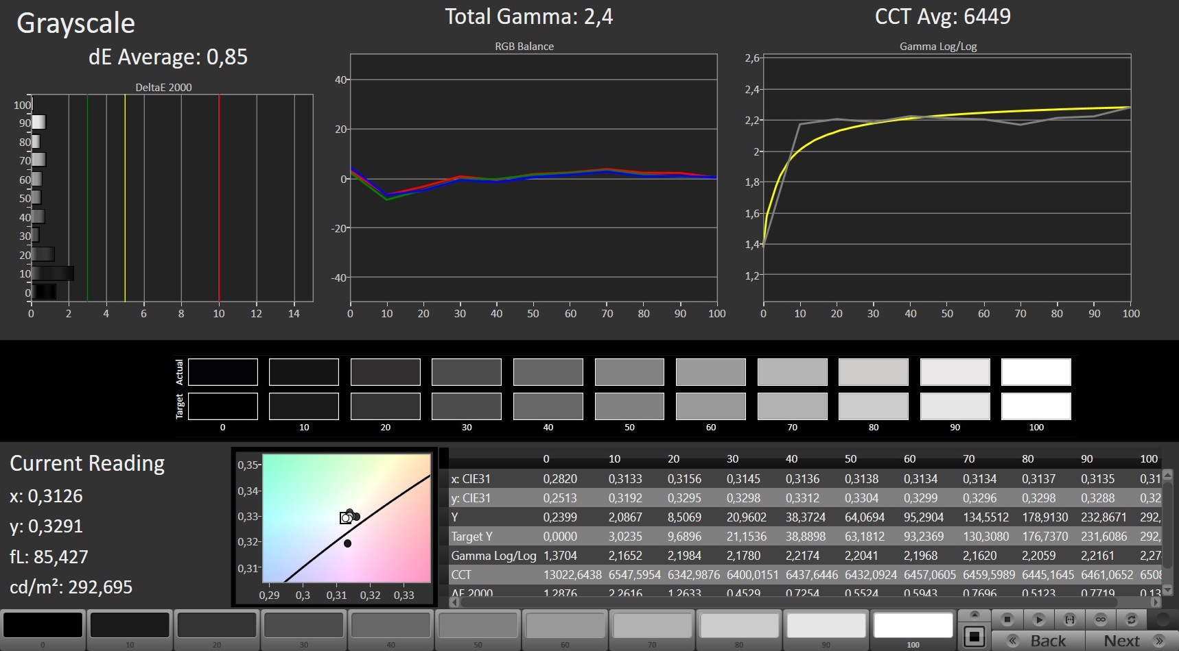 ΔE Greyscale Calman: 4.01 | ∀{0.09-98 Ø5}
