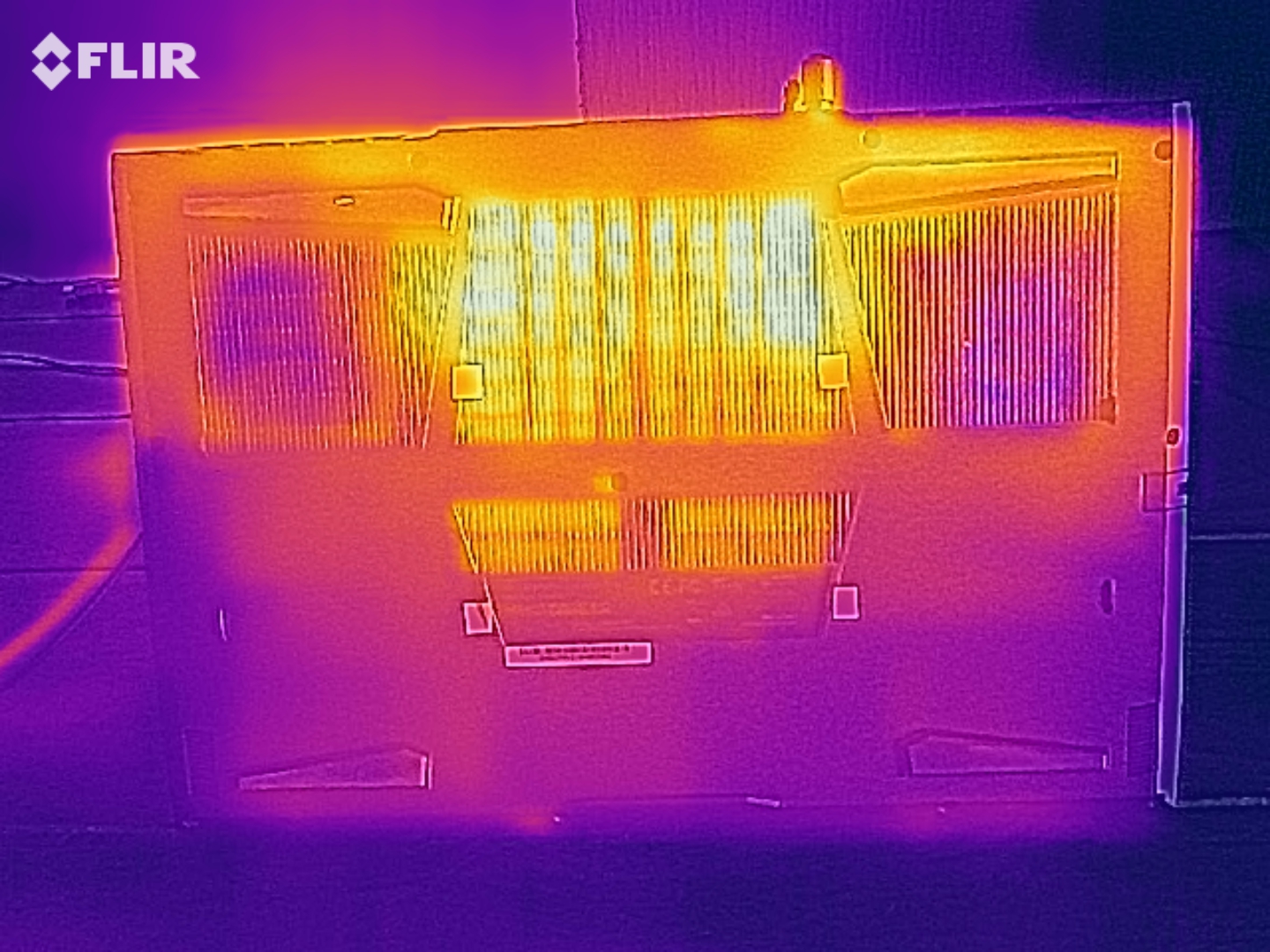 En las superficies de la caja pudimos medir hasta 48 °C (118 °F) en la parte superior y 59 °C (138 °F) en la parte inferior durante la operación a plena carga, lo que también es un resultado medio. Por otra parte, toda la caja permanece agradablemente fría sin exceder la marca de 30 °C (86 °F) durante la operación en reposo.