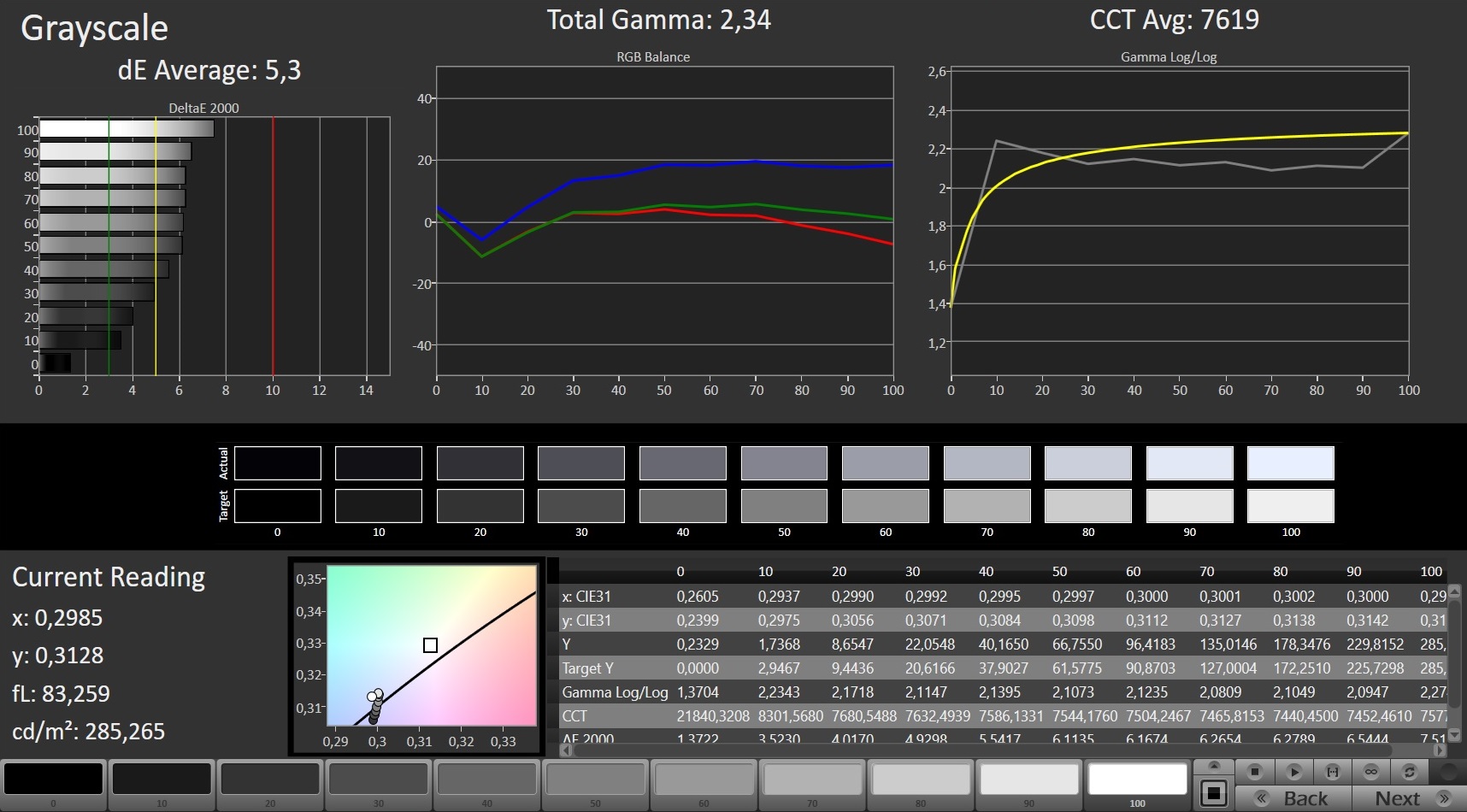 ΔE Greyscale Calman: 5.3 | ∀{0.09-98 Ø5}