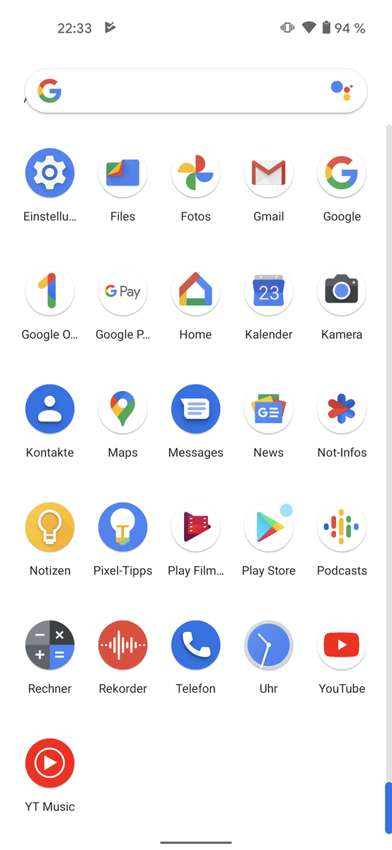 En cuanto a las conexiones físicas, el Pixel 5 se mantiene fiel a su tema frugal, y se limitan a un puerto USB-C (USB-C 3.2 Gen.1) y una ranura Nano-SIM. Desafortunadamente, el Pixel 5 no ofrece una ranura para una tarjeta microSD, por lo que está limitado al almacenamiento interno. En el estado de entrega, alrededor de 111 GB de eso todavía están disponibles para el usuario.