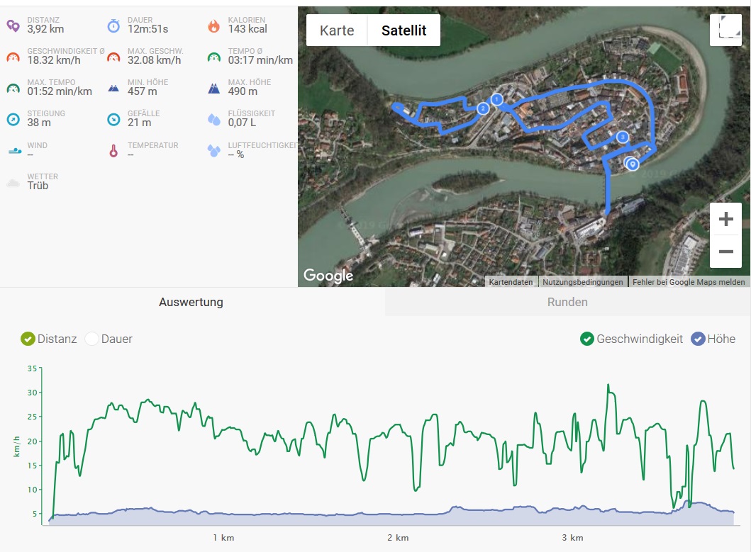 El OnePlus 7T se muestra en nuestro test práctico sobre la bicicleta como un navegador muy exacto; incluso puede representar el bucle en el punto de inflexión con bastante precisión, lo que a menudo es difícil. También funciona en las calles del casco antiguo, y está un poco cerca de la calle sólo en un tramo. En general, el OnePlus 7T es absolutamente recomendable para la navegación.
