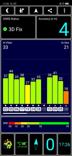 Usted tiene control sobre el modo de localización y puede elegir entre una función GPS sólo para dispositivos o un modo de alta precisión que utiliza Internet para identificar con mayor precisión la ubicación. Configuramos la opción Sólo Dispositivo para obtener una evaluación justa de las capacidades de rastreo de la radio GPS. En interiores, el teléfono no podía asegurar una posición adecuada, pero la recepción de la señal era buena en exteriores con una precisión de hasta 4 m. La batería se agotó mientras usaba el GPS, pero el teléfono no se calentó.
