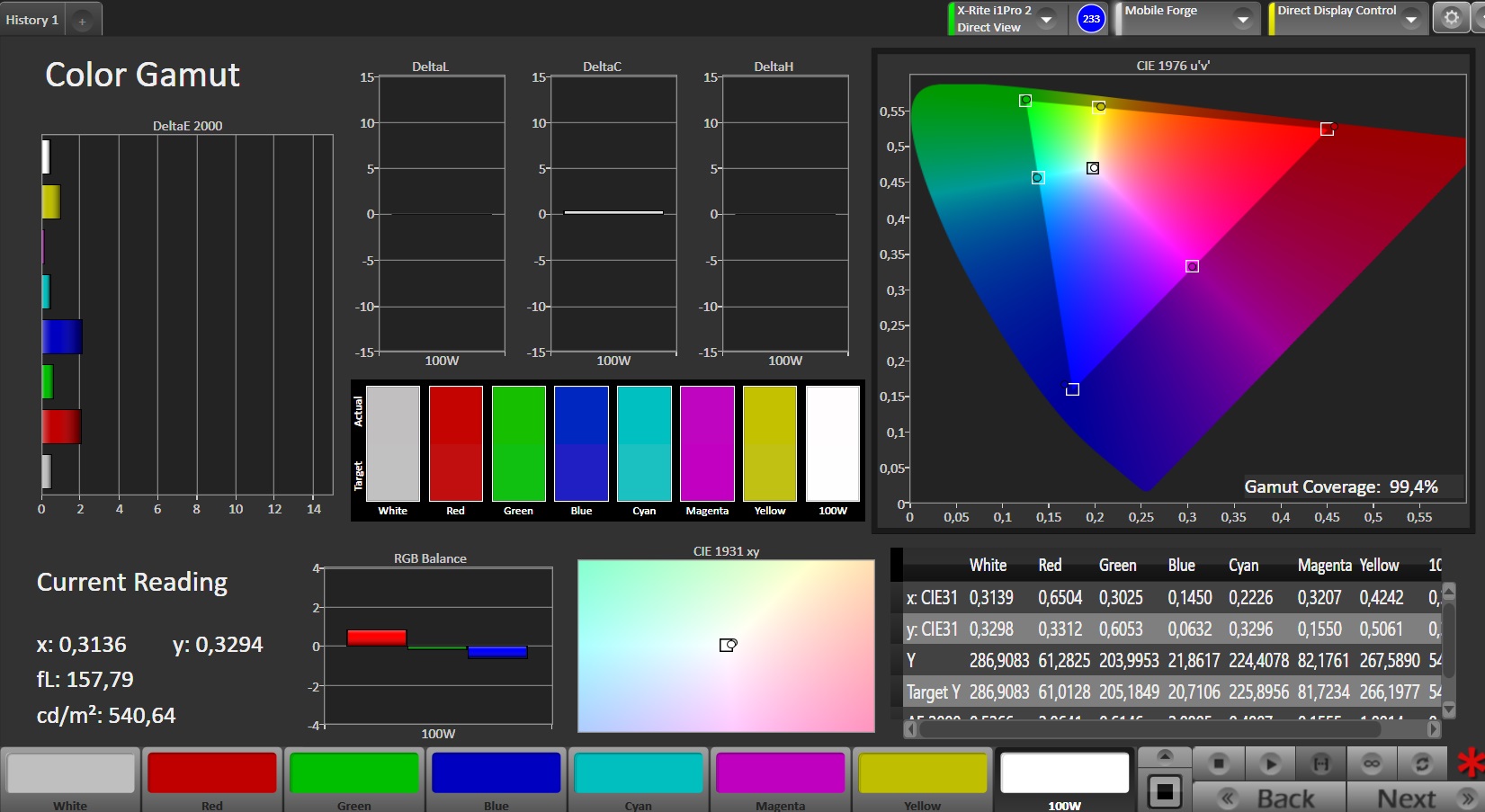 Este año, el más asequible iPhone 12 también está equipado con una pantalla OLED con una resolución de 2532 x 1170 píxeles, lo que significa que es adecuado para contenido nativo Full-HD. La pantalla también tiene una certificación HDR y debe ofrecer un brillo de hasta 1200 nits. Nuestra prueba con una pantalla totalmente blanca da como resultado un poco más de la mitad de este valor, mientras que el brillo puede ser realmente mayor en áreas más pequeñas iluminadas de la pantalla.