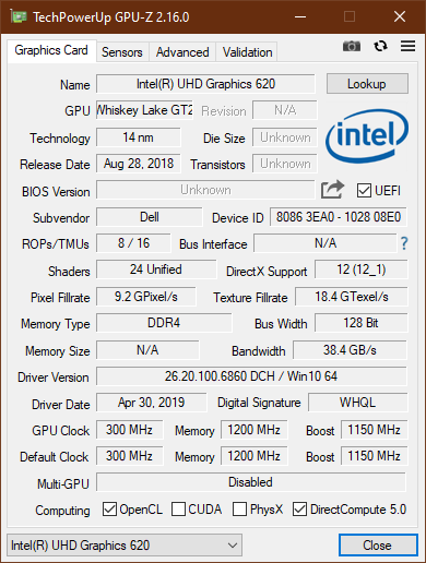 | Dell Latitude 7300-P99G i7-8665U, UHD Graphics 620, Samsung SSD PM981 MZVLB512HAJQ, IPS LED, 1920x1080, 13.3" | Dell Latitude 7390 i7-8650U, UHD Graphics 620, Samsung PM961 MZVLW256HEHP, IPS, 1920x1080, 13.3" | Lenovo ThinkPad X390-20Q1S02M00 i5-8265U, UHD Graphics 620, Intel SSD Pro 7600p SSDPEKKF512G8L, IPS LED, 1920x1080, 13.3" | HP EliteBook 830 G5-3JX74EA i5-8550U, UHD Graphics 620, Samsung SSD PM961 1TB M.2 PCIe 3.0 x4 NVMe (MZVLW1T0), IPS LED, 1920x1080, 13.3" | Dell XPS 13 9380 2019 FHD i7-8565U, UHD Graphics 620, SK hynix PC401 HFS256GD9TNG, , 1920x1080, 13.3" | Medio Intel UHD Graphics 620 | Media de la clase Subnotebook | |