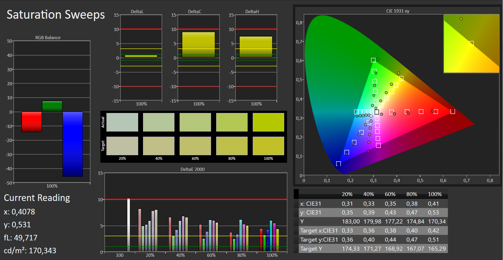 ΔE Greyscale Calman: 6.9 | ∀{0.09-98 Ø5}