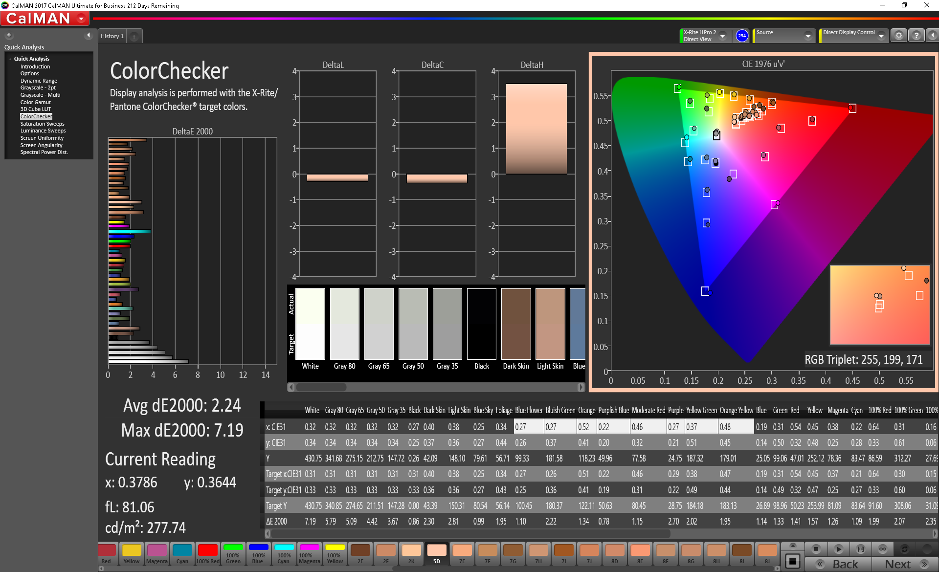ΔE ColorChecker Calman: 2.24 | ∀{0.5-29.43 Ø4.78}