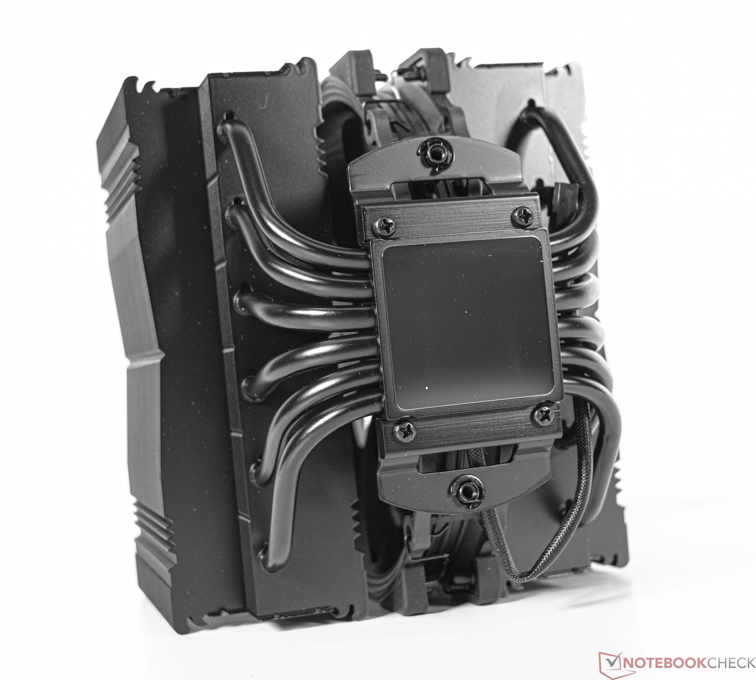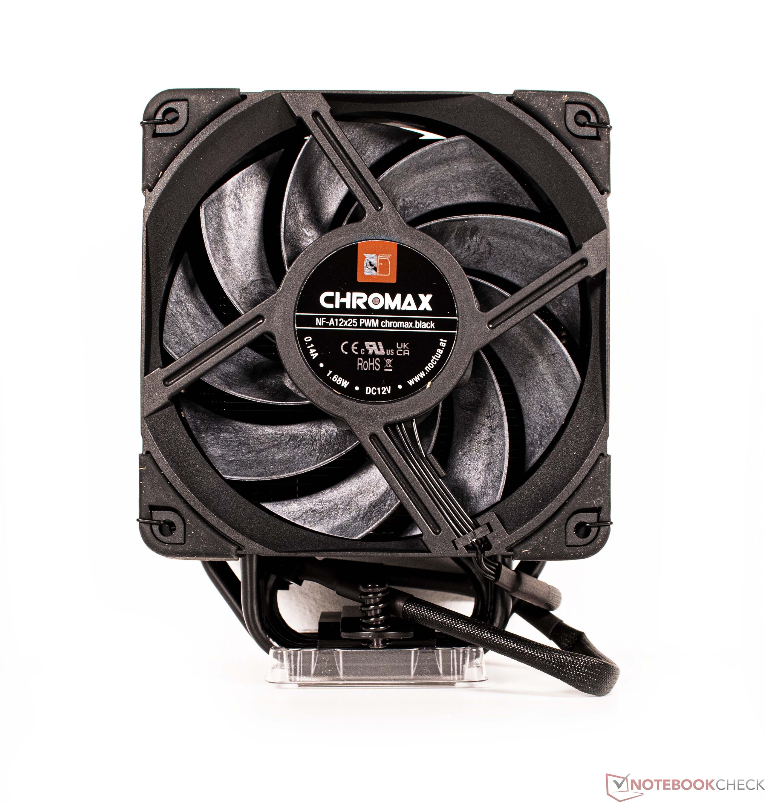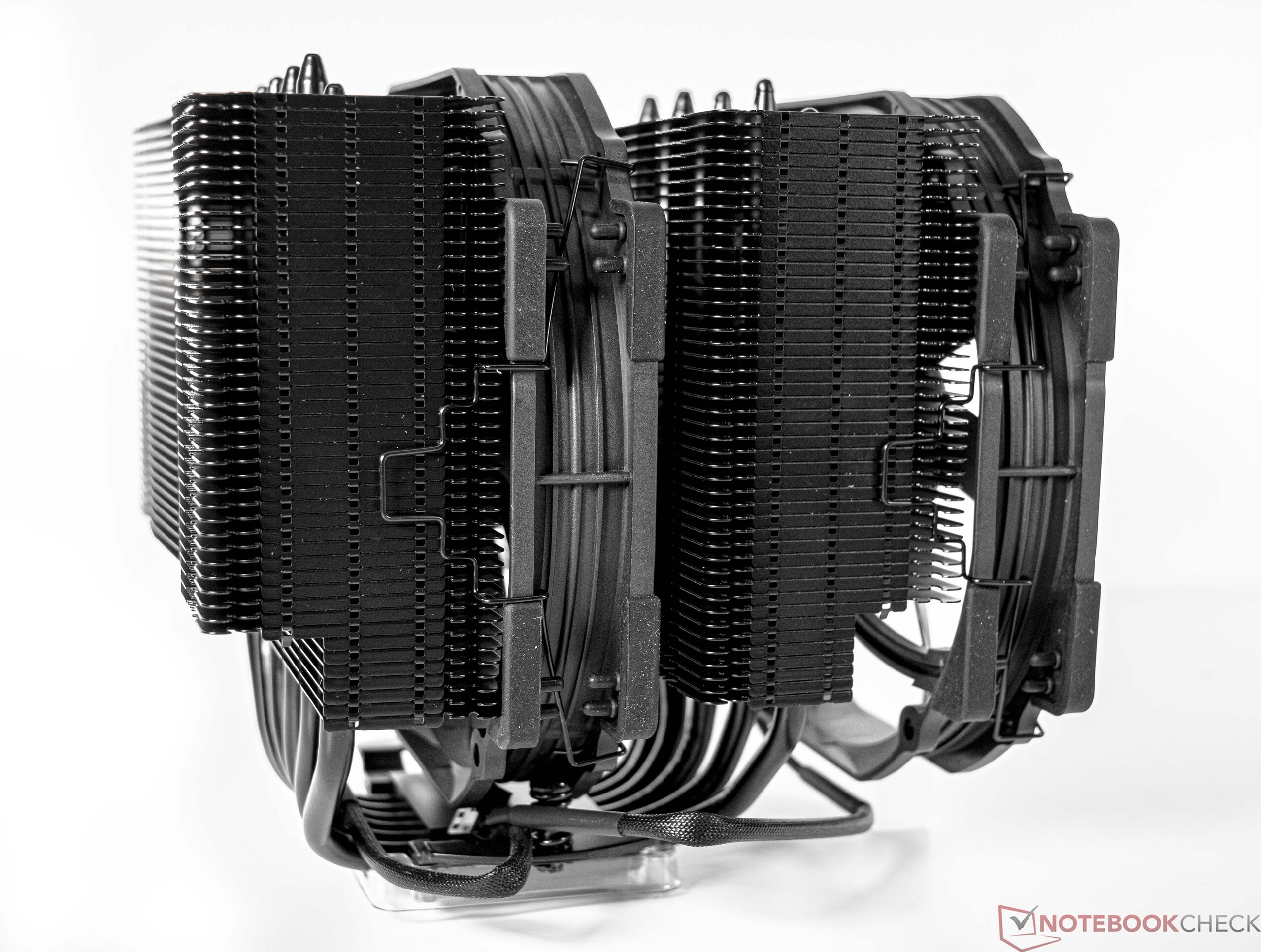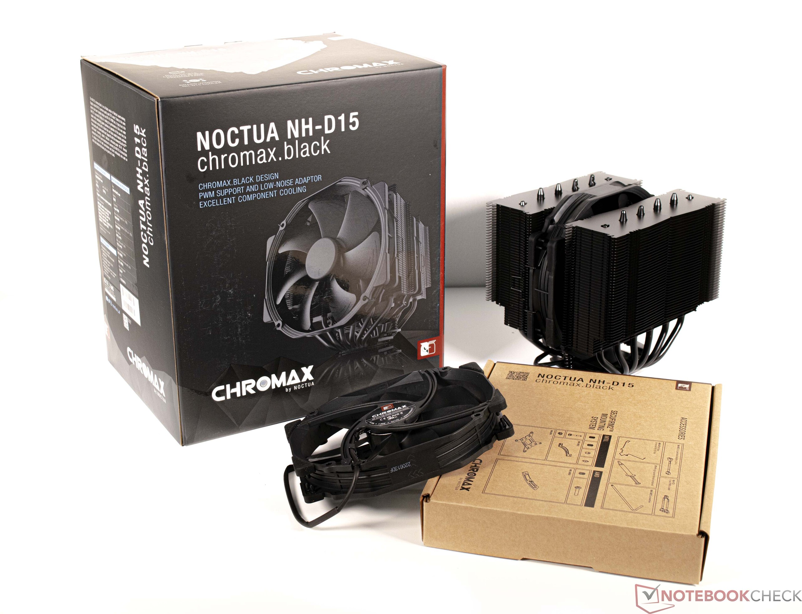 La fabricación del refrigerador es muy buena y de alta calidad. Para este análisis, probamos el Noctua NH-D15 en la versión Chromax Black. Alternativamente, el modelo también está disponible en una versión niquelada, que también incluye los ventiladores en el familiar color marrón de Noctua (ver imagen)