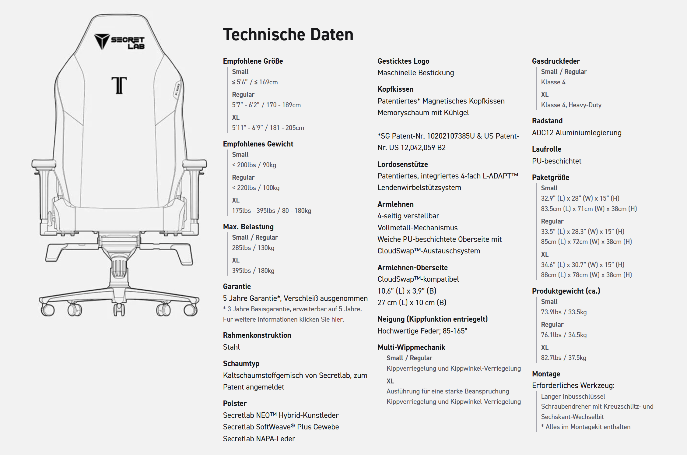El fabricante Secretlab, con sede en Singapur, es conocido desde hace años por sus sillas de juego, que entraron en el mercado en 2015. Hace unos meses, examinamos la Magnus Pro XL de altura regulable y ahora también hemos probado en detalle la silla de juego Titan Evo. Nuestra unidad es el tamaño normal en negro con la piel sintética Neo Hybrid, a un PVPR de 549 euros. Como alternativa, la silla también está disponible en otros dos tamaños: Pequeña (549 euros) y XL (599 euros).