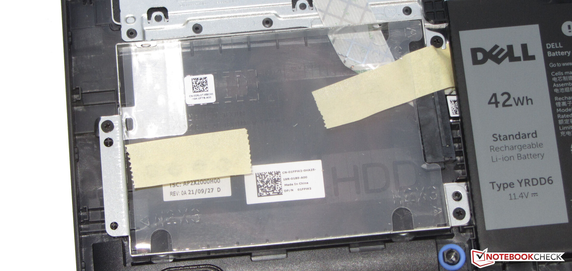 Dell utiliza un chasis delgado y negro mate con superficies de plástico rugosas. No hay deficiencias en cuanto a la calidad de construcción. Sin embargo, hay margen de mejora en cuanto a la rigidez y la robustez: La unidad base y la tapa son demasiado susceptibles de torcerse por las esquinas y el chasis cede bajo presión. La batería es fija. Los componentes son accesibles tras retirar la placa inferior.
