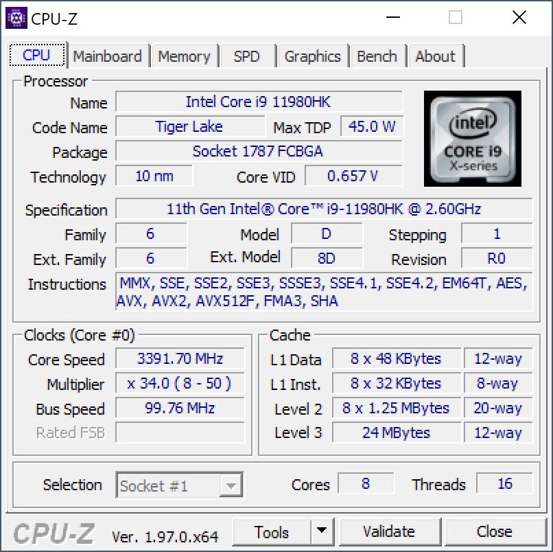 | MSI WE76 11UM-456 Intel Core i9-11980HK, NVIDIA RTX A5000 Laptop GPU | Lenovo ThinkPad P1 G4-20Y4S0KS00 Intel Core i7-11850H, NVIDIA GeForce RTX 3070 Laptop GPU | HP ZBook Fury 15 G8 Intel Core i9-11950H, NVIDIA RTX A5000 Laptop GPU | Asus ProArt StudioBook 16 W7600H5A-2BL2 Intel Xeon W-11955M, NVIDIA RTX A5000 Laptop GPU | Lenovo ThinkPad P17 G2-20YU0025G Intel Core i7-11800H, NVIDIA RTX A2000 Laptop GPU | HP ZBook Fury 17 G7 119W5EA Intel Core i9-10885H, NVIDIA Quadro RTX 4000 Max-Q | MSI WE75 9TK Intel Core i7-9750H, NVIDIA Quadro RTX 3000 (Laptop) | |