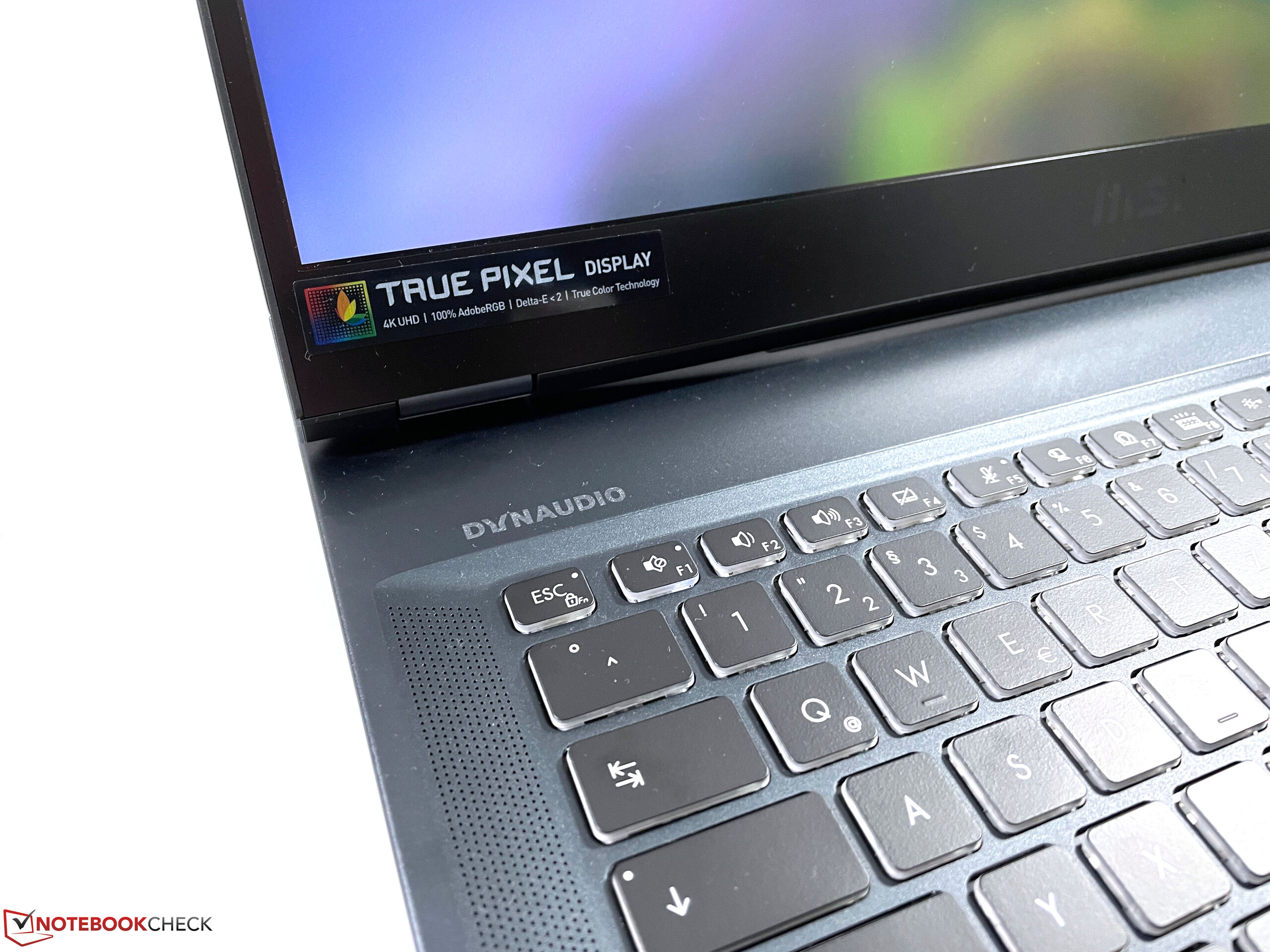 El hecho de que el fabricante haya utilizado un portátil para juegos (GE76) como referencia no es un problema para nosotros. Se ha omitido la extensa iluminación, y tampoco hay modelos de pantalla de 360 Hz, que no encajarían en absoluto dado el grupo objetivo. En su lugar, hay un panel 4K mate con colores precisos, una cobertura AdobeRGB casi completa, y 120 Hz, que también resultan en una impresión de imagen notablemente más suave en el uso diario. Además, hay un teclado muy bueno que incluye un teclado numérico dedicado.