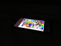 No hemos notado ningún parpadeo en la pantalla a un brillo más bajo. El contraste y el balance de blancos se pueden ajustar en tres pasos respectivamente. Mientras que el balance de blancos estándar produce un ligero matiz azul, esto es sólo mínimo en comparación con otras pantallas de teléfonos inteligentes.