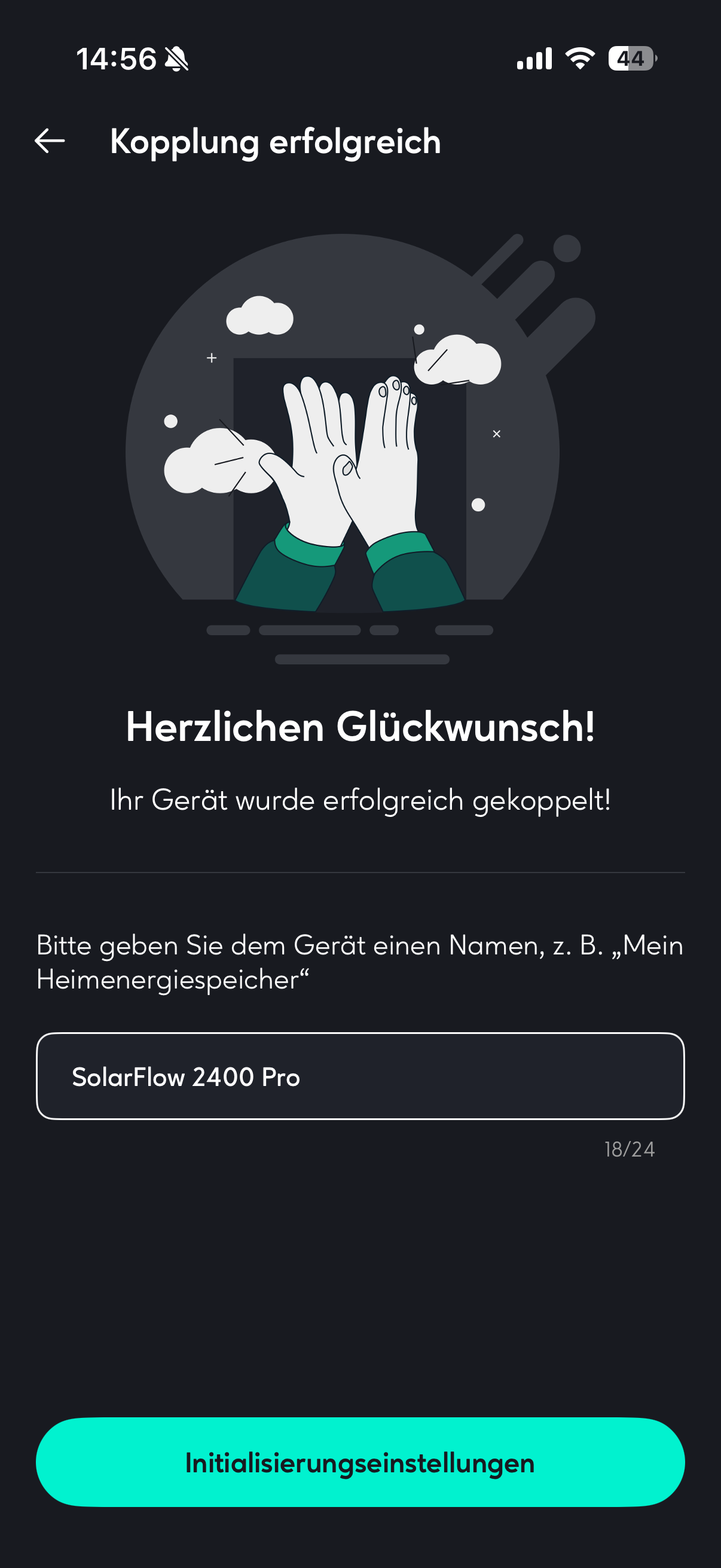 Conecte ahora los módulos solares a los cuatro pares de conectores MC4. A continuación, conecte el sistema a una toma de corriente mediante el cable de CA de 3 m suministrado. SolarFlow 2400 Pro ya está listo para funcionar y puede configurarse a través de la aplicación.