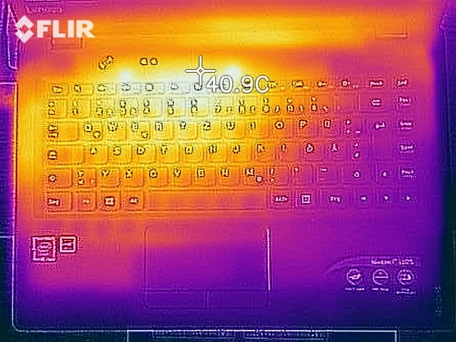 El portátil no se calienta demasiado. Durante nuestras pruebas de estrés, las temperaturas de la superficie se mantienen muy por debajo de los 40 ° C.
